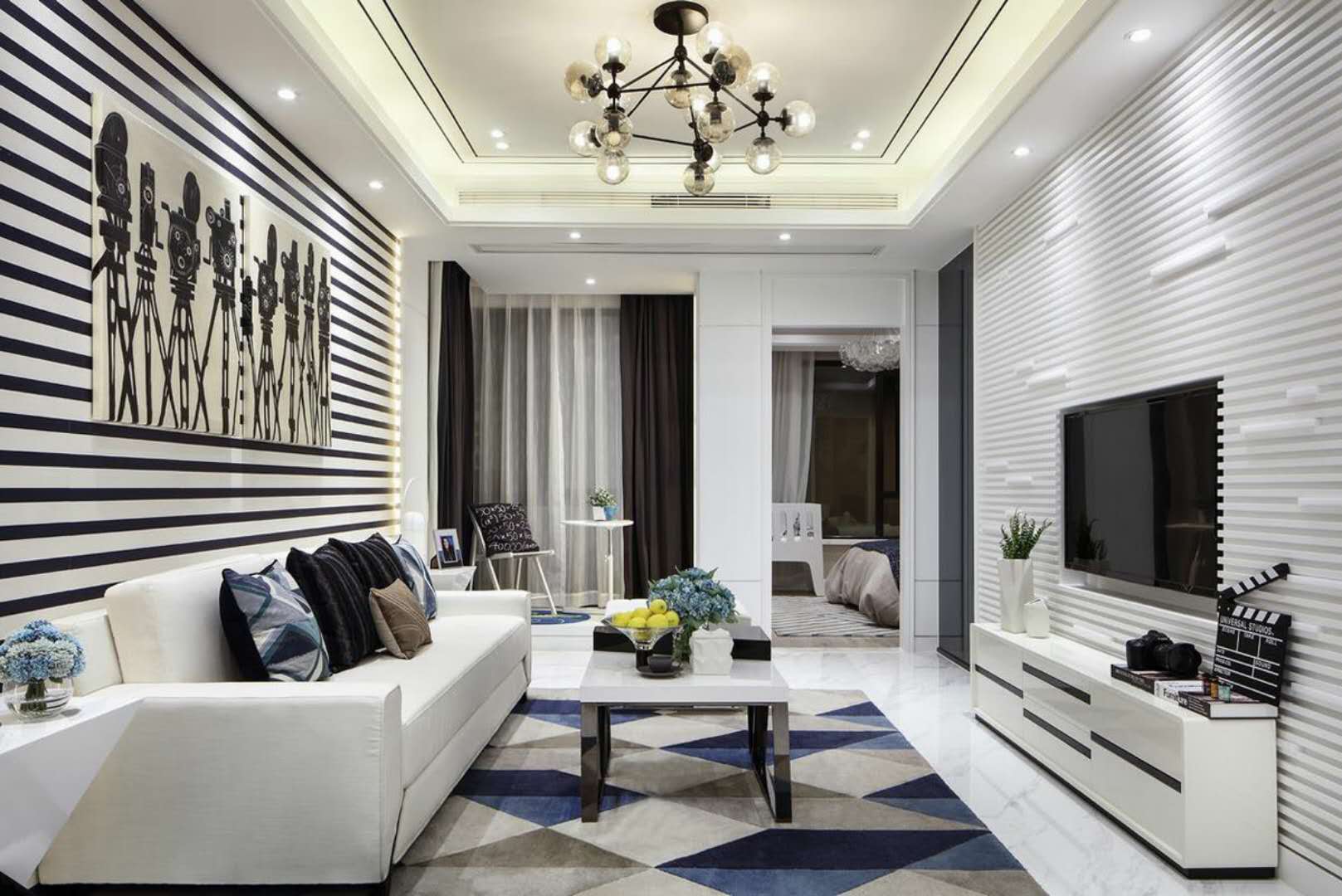 這套新古典風(fēng)格的二居室,用的是最簡(jiǎn)單的黑白色調(diào),但是一些小設(shè)計(jì)還是彰顯出了古典風(fēng)格的精致華美。新古典風(fēng)格最大的特色,就是能把古典主義的精致感,完美地融合到現(xiàn)代風(fēng)格里,打造不一樣的家裝氛圍。