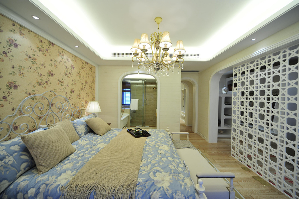 因?yàn)檫@套二居室的面積很是寬裕,所以客廳的沙發(fā)選取了比較大的尺寸,布藝沙發(fā)看起來十分舒適。餐廳的吊頂十分別致,藏光的設(shè)計(jì),讓整個(gè)餐廳看起來開闊不少。主臥和衣帽間之間的隔斷是一面造型別致的鏤空屏風(fēng),一點(diǎn)都不顯得擁擠。