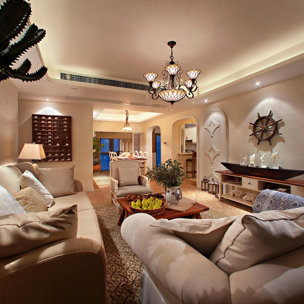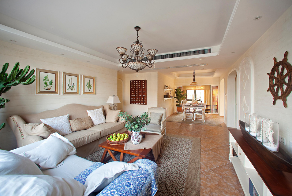 南寧龍庭水岸毛坯房112平米地中海風(fēng)格裝修案例效果圖