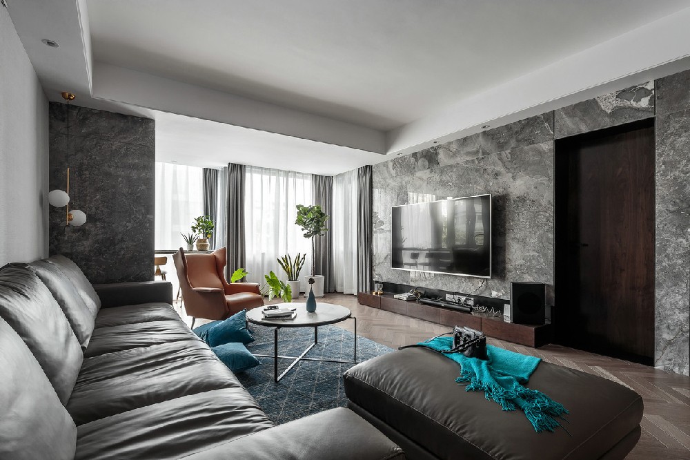 后現(xiàn)代風(fēng)格的裝修充滿混搭與時(shí)尚的特色,客廳整體采用了大理石的墻面,配上深色的皮質(zhì)沙發(fā),質(zhì)感十足。整套三居室比較沉穩(wěn)厚重,喜歡成熟風(fēng)格的業(yè)主,絕對(duì)不能錯(cuò)過。