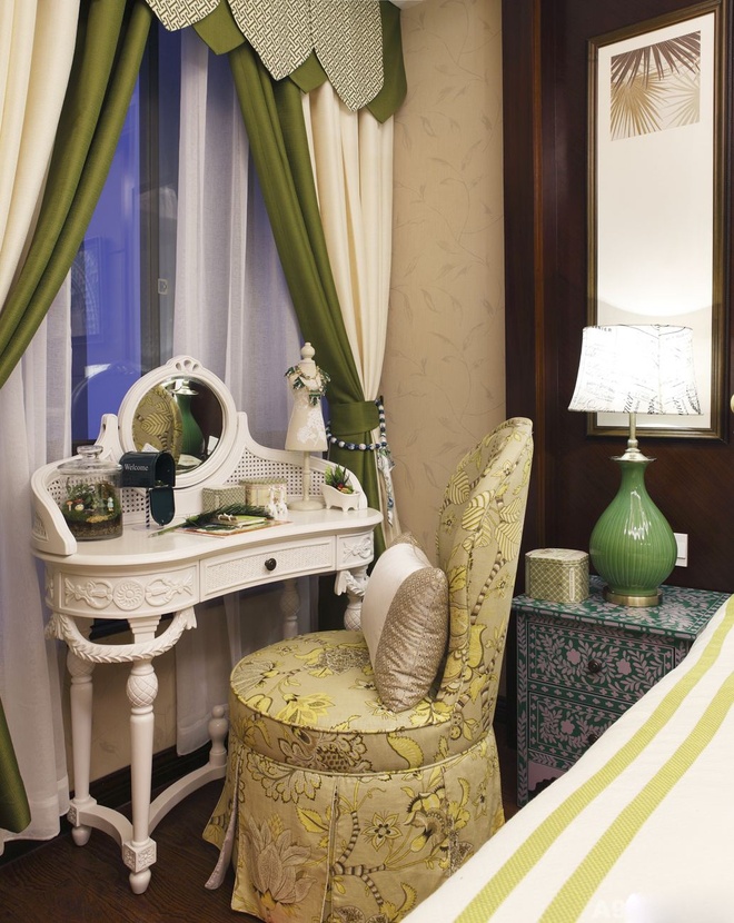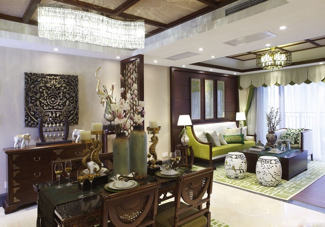 業(yè)主喜歡東南亞風(fēng)格里的特色民族風(fēng)情,這套東南亞風(fēng)格運(yùn)用了很多民族元素的裝飾,用綠色做點(diǎn)綴,搭配上木色的家具,會(huì)有一種自然的感覺。東南亞風(fēng)格注重打造一種奔放感與自由感,家居風(fēng)格別樹一幟。