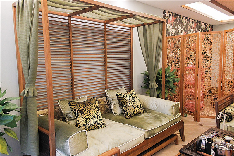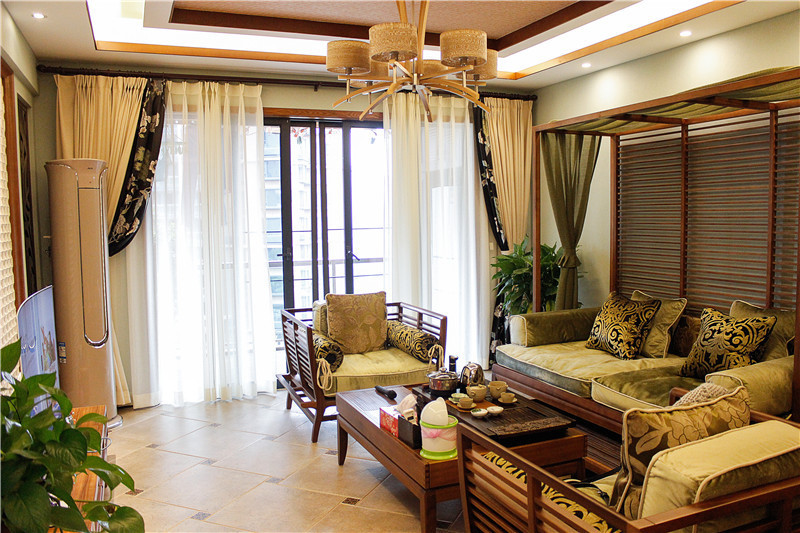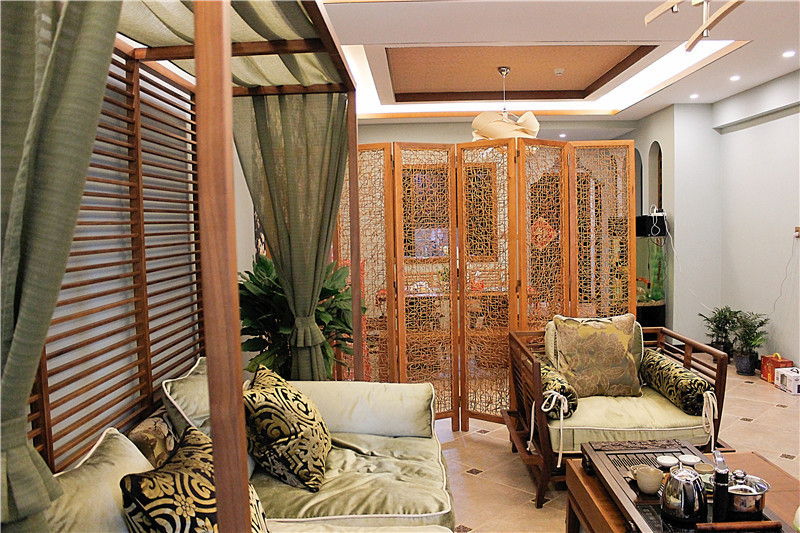 業(yè)主喜歡東南亞風格的異域感與大氣感,客廳給人的第一印象就是豪華與穩(wěn)重,但是細看又處處精致。東南亞風格崇尚保留材質(zhì)的本味,所以木質(zhì)的家具從來不會用太多的裝飾去掩蓋,自然而然地流出一種優(yōu)雅感。
