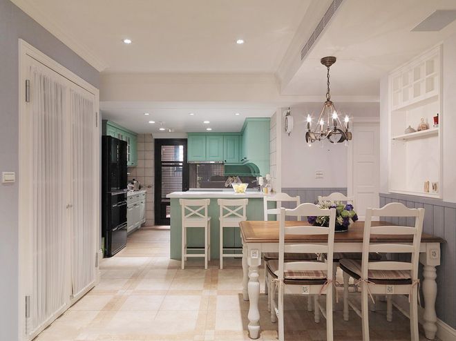 業(yè)主一家三口一起居住,過(guò)兩年可能會(huì)把父母接過(guò)來(lái)一起住,所以在裝修風(fēng)格上選擇了比較大眾的田園風(fēng)格。清新的色調(diào)備受年輕人歡迎,父母輩也可以接受,對(duì)于三世同堂的家庭來(lái)說(shuō),田園風(fēng)格一直都是個(gè)不錯(cuò)的選擇。