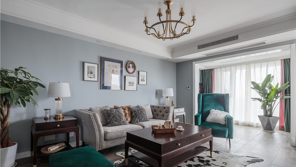 南寧盛天公館毛坯房92平米美式風(fēng)格裝修案例效果圖