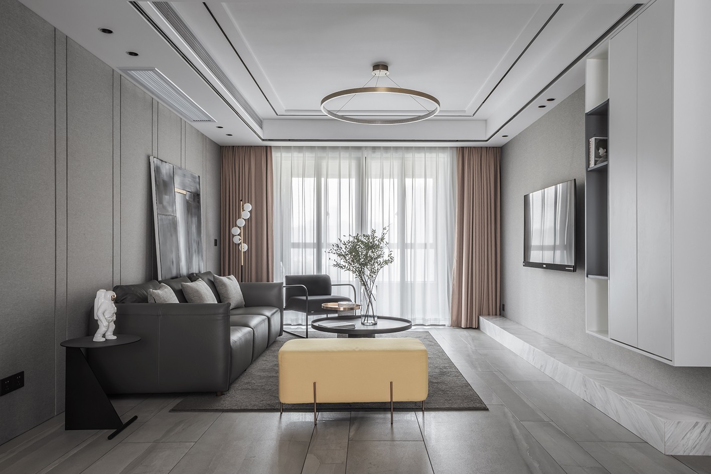 簡(jiǎn)約風(fēng)格裝飾品比較簡(jiǎn)單,并且不用太多,但是每個(gè)飾品都別具一格,線條簡(jiǎn)單但又非常有個(gè)性??蛷d以灰色為主,灰色是簡(jiǎn)單的,純粹的,它能搭配任何顏色,五彩繽紛的顏色,也因?yàn)榛疑拇嬖诓拍芡癸@出各自的優(yōu)點(diǎn)。