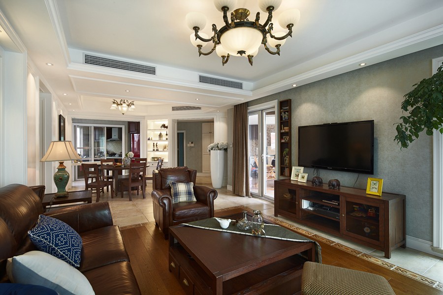 南寧萬匯華府毛坯房110平米美式風(fēng)格裝修案例效果圖