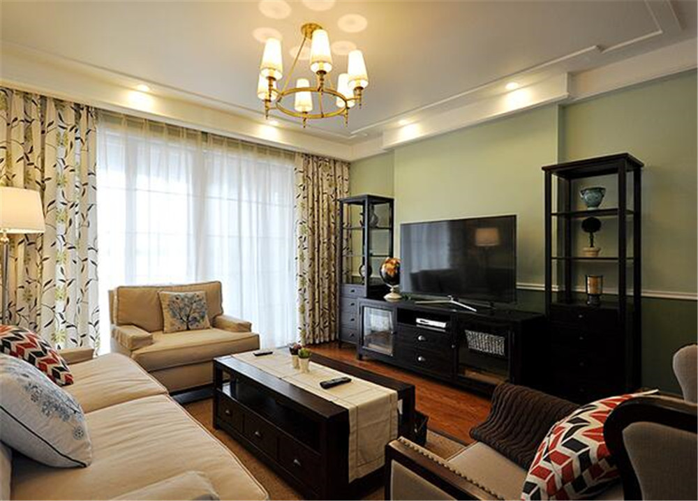 這是一套很經(jīng)典的美式風(fēng)格,客廳的地板和家具選用的是深色,墻面使用的是淺色系,兩者相互映襯,相得益彰。在美式風(fēng)格中,很多裝修都是沒(méi)有必要的,重要的是家具的選取,以及整體氛圍的塑造。