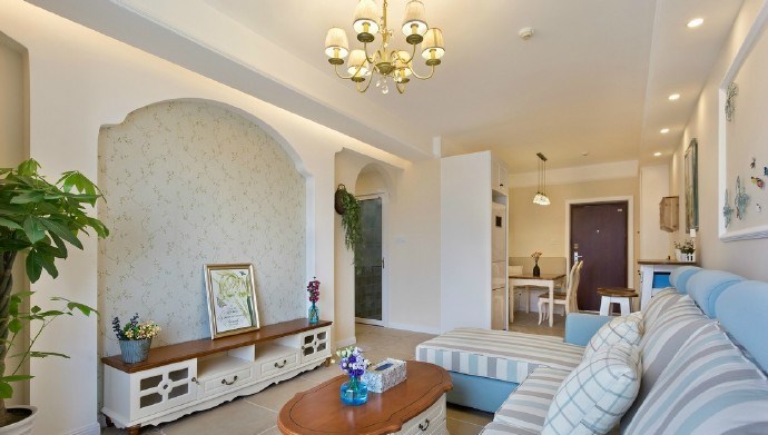 南寧海普·四季綠城毛坯房77平米地中海風(fēng)格裝修案例效果圖