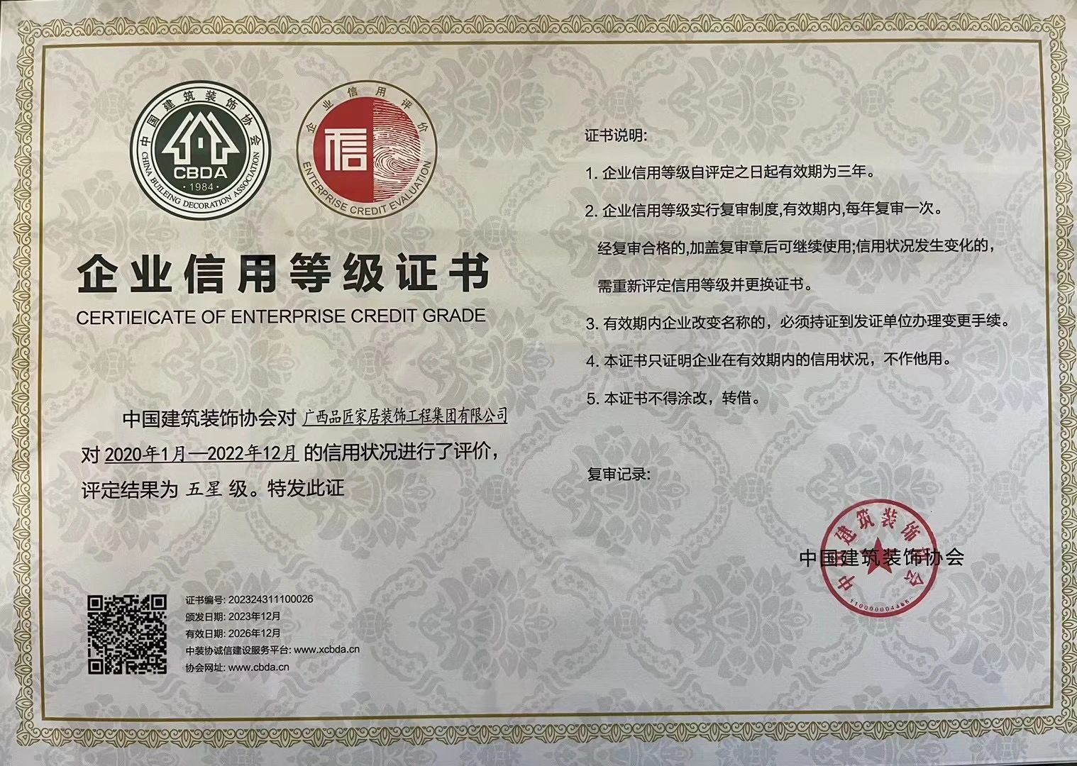 住宅產(chǎn)業(yè)年會現(xiàn)場,正式發(fā)布了由中國建筑裝飾協(xié)會住宅產(chǎn)業(yè)分會組織評審,經(jīng)由第三方專業(yè)信用評價機構(gòu)進(jìn)行權(quán)威評估的2023年度家裝企業(yè)信用評價星級名單,廣西品匠家居裝飾集團(tuán)喜獲此殊榮。