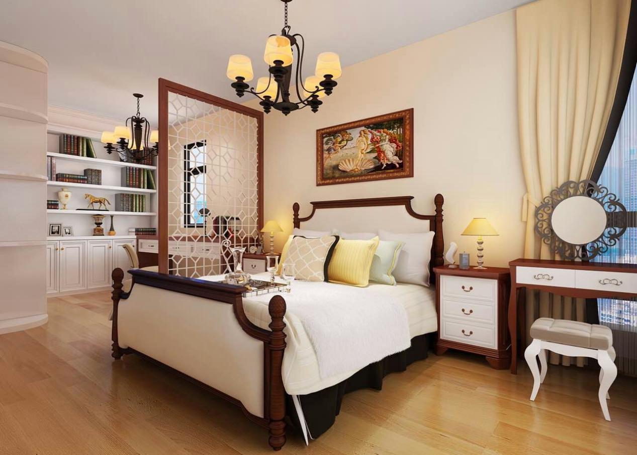 為了合理規(guī)劃空間,設(shè)計(jì)師把書(shū)房放進(jìn)了臥室里,只用一個(gè)鏤空的屏風(fēng)簡(jiǎn)單隔開(kāi),這樣一來(lái),臥室和書(shū)房都不會(huì)顯得很擁擠,整個(gè)空間都開(kāi)闊了不少。