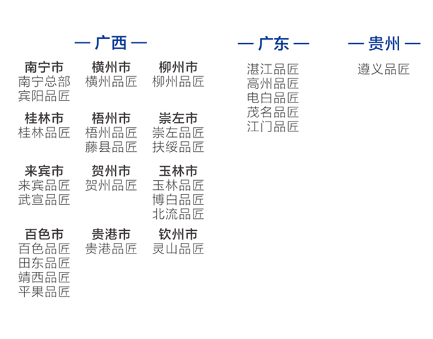 作為從南寧走向全國(guó)的桂系裝企品牌,目前已在???、湛江、柳州、百色等多個(gè)城市開(kāi)設(shè)全國(guó)直營(yíng)連鎖分公司,并將以南寧為中心輻射全國(guó)設(shè)立更多品牌分公司。集團(tuán)始終秉承“施人品、行匠心、成品匠”的企業(yè)理念,以一站式整裝為優(yōu)勢(shì),以更多、更快、更好、更省的裝修裝飾理念,熱忱服務(wù)全國(guó)廣大客戶!